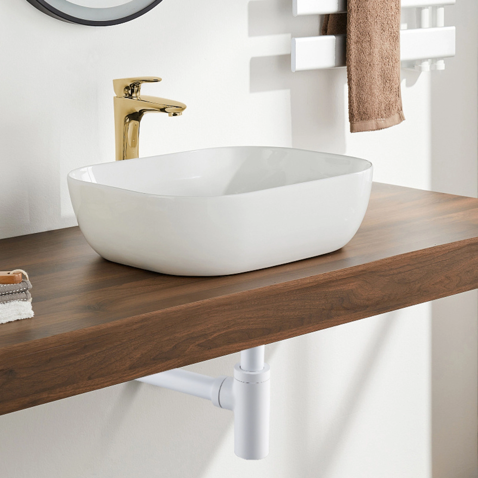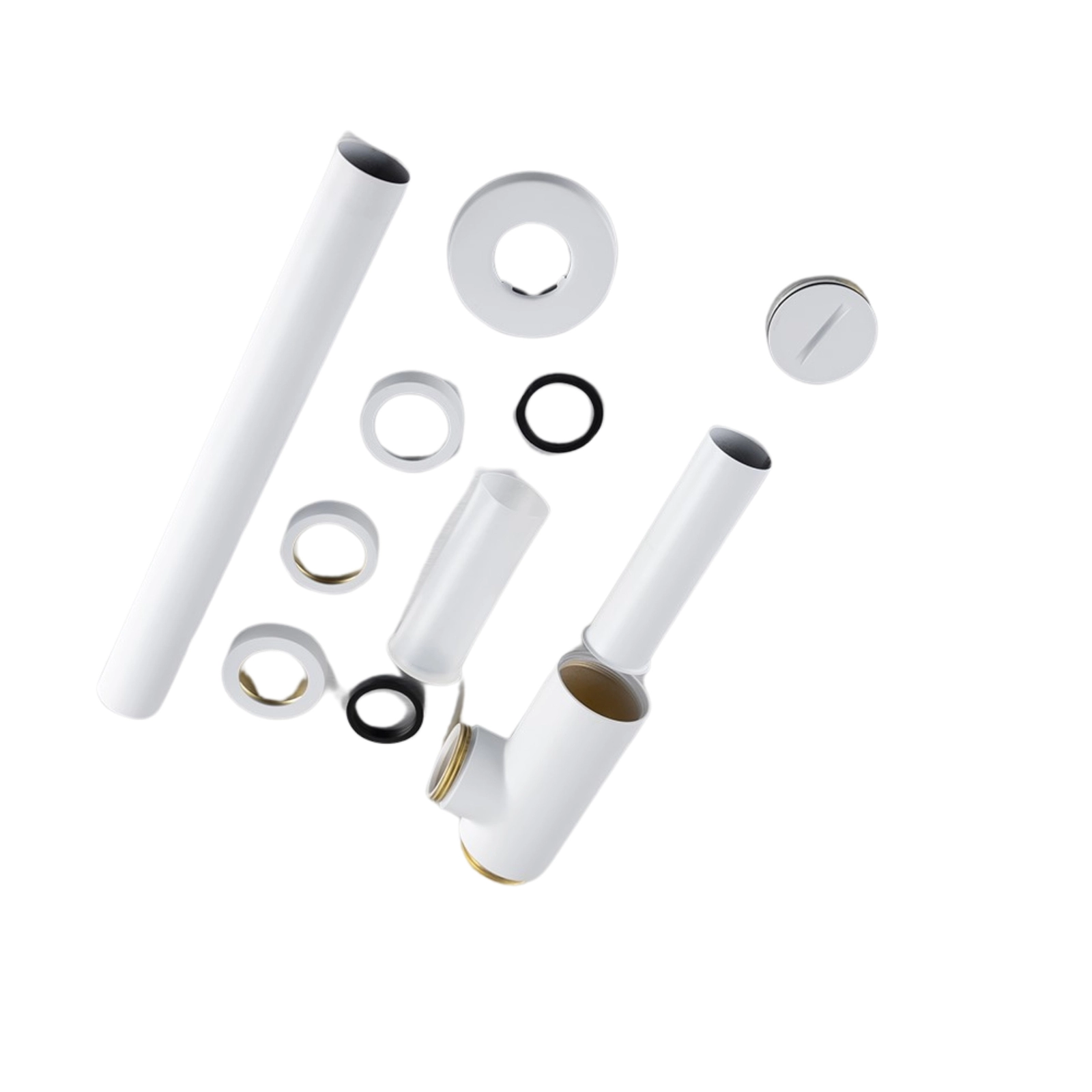 Apvalus sifonas praustuvui Balneo šlifuotas baltas – žalvarinis sifonas praustuvams