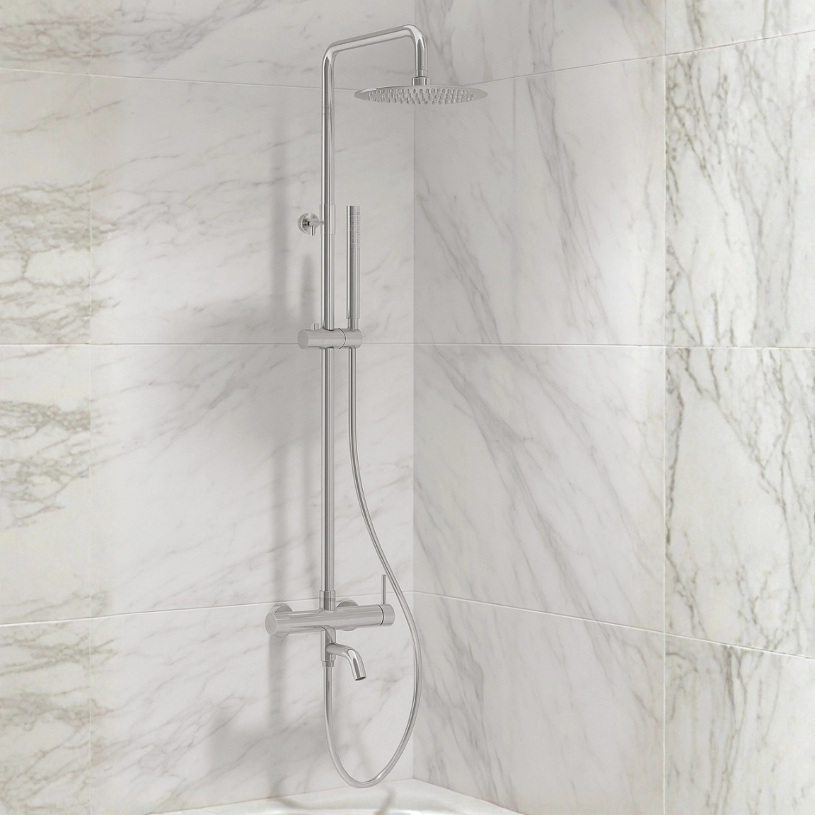 CASCADE – tai moderni sieninė dušo sistema, sukurta ieškantiems patikimo, funkcionalaus ir estetiško sprendimo šiuolaikiniam vonios kambariui. Komplektą sudaro lietaus dušas, rankinis dušas ir maišytuvas, užtikrinantys patogų naudojimą bei sklandų vandens srauto valdymą.