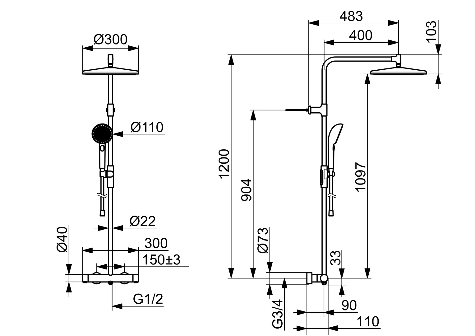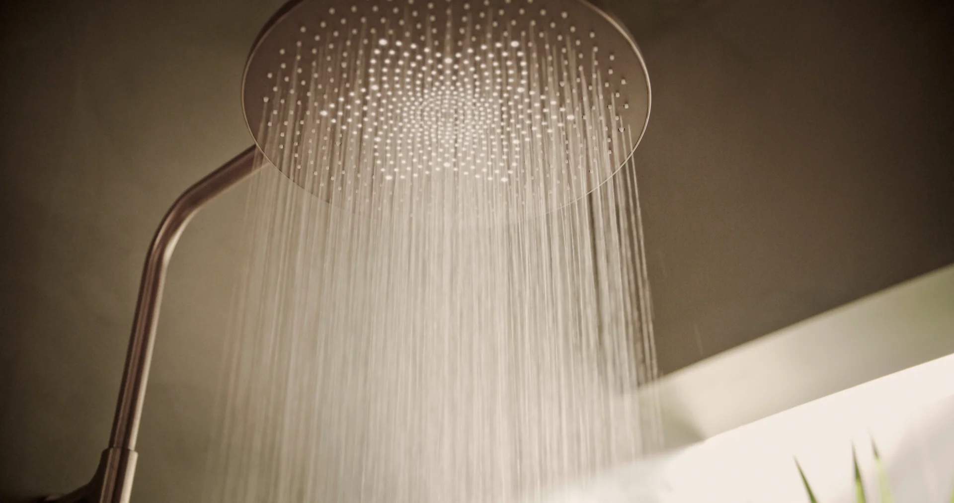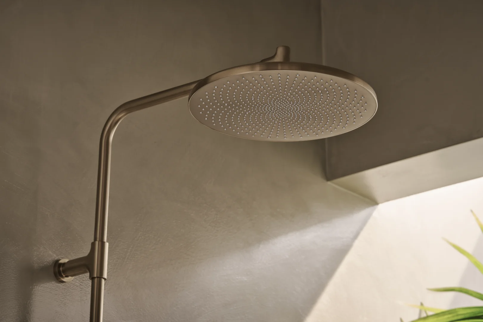 Didelė Ø300 mm lietaus dušo galva užtikrina tolygų vandens paskirstymą visam kūnui, o 3 srovių rankinis dušas leidžia pasirinkti skirtingus režimus – nuo švelnaus atpalaiduojančio iki intensyvaus ar pulsuojančio masažuojančio srauto. Termostatinis maišytuvas palaiko pastovią temperatūrą ir turi 38 °C saugos fiksavimo funkciją, apsaugančią nuo nusiplikinimo. Eco režimas padeda taupyti vandenį neprarandant komforto.
