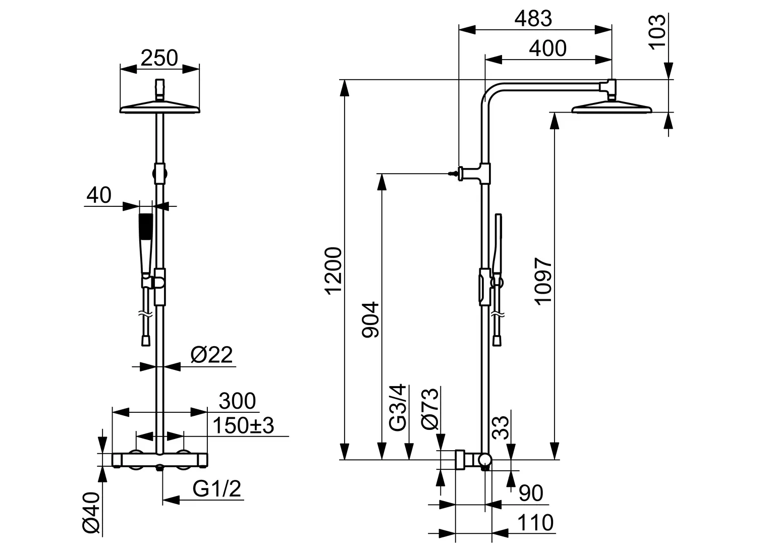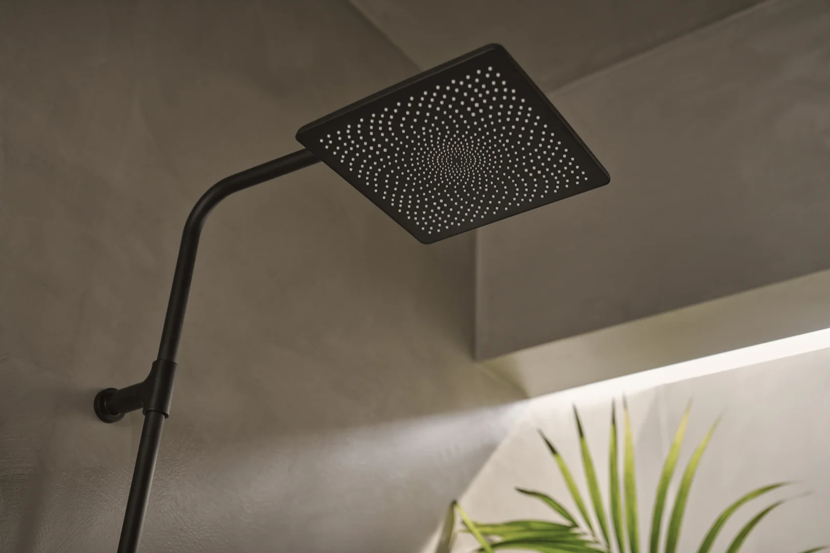 Plati 250 x 250 mm lietaus dušo galva tolygiai paskirsto vandens srautą, apgaubdama visą kūną ir suteikdama gaivų, atpalaiduojantį pojūtį. Termostatinis maišytuvas užtikrina stabilią temperatūrą ir saugų naudojimą, o integruota 38 °C saugos funkcija apsaugo nuo nusiplikinimo. Eco režimas leidžia taupyti vandenį neprarandant komforto.