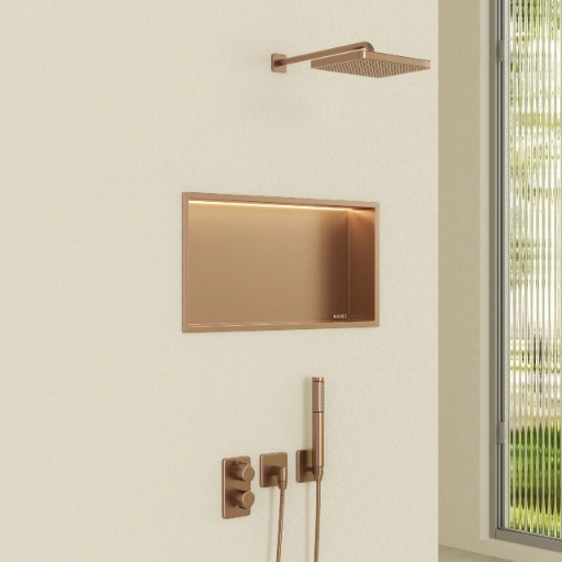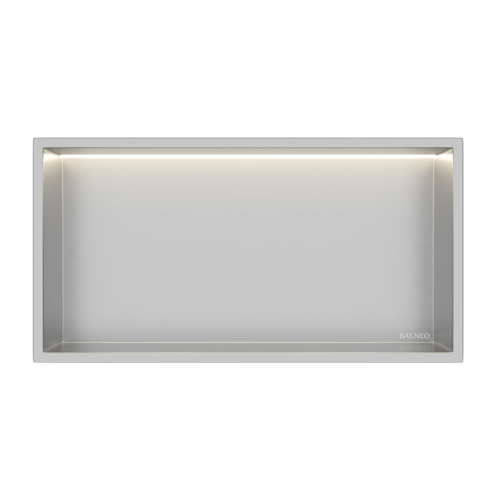 Lentyna pagaminta iš nerūdijančio plieno, todėl yra atspari drėgmei, patikima ir ilgaamžė net intensyviai naudojamose patalpose. Integruotas LED apšvietimas subtiliai apšviečia nišos vidų, sukuria jaukią atmosferą ir pagerina naudojimo komfortą. Naudojama pažangi LED technologija užtikrina tolygią šviesos liniją be matomų diodų taškų, išlaikant modernų ir harmoningą dizainą.