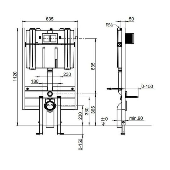 Potinkinis WC rėmas Villeroy & Boch ViConnect Compact – tai plonas ir kompaktiškas sprendimas, skirtas mažesnėms erdvėms ar projektams, kur svarbus minimalus gylis. Dėl vos 90 mm gylio šis modelis yra siauresnis nei standartiniai potinkiniai rėmai, todėl puikiai tinka ten, kur ribota montavimo erdvė.