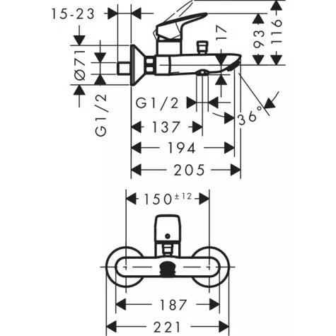 Atstumas tarp pajungimo centrų: 150 mm ± 12 mm