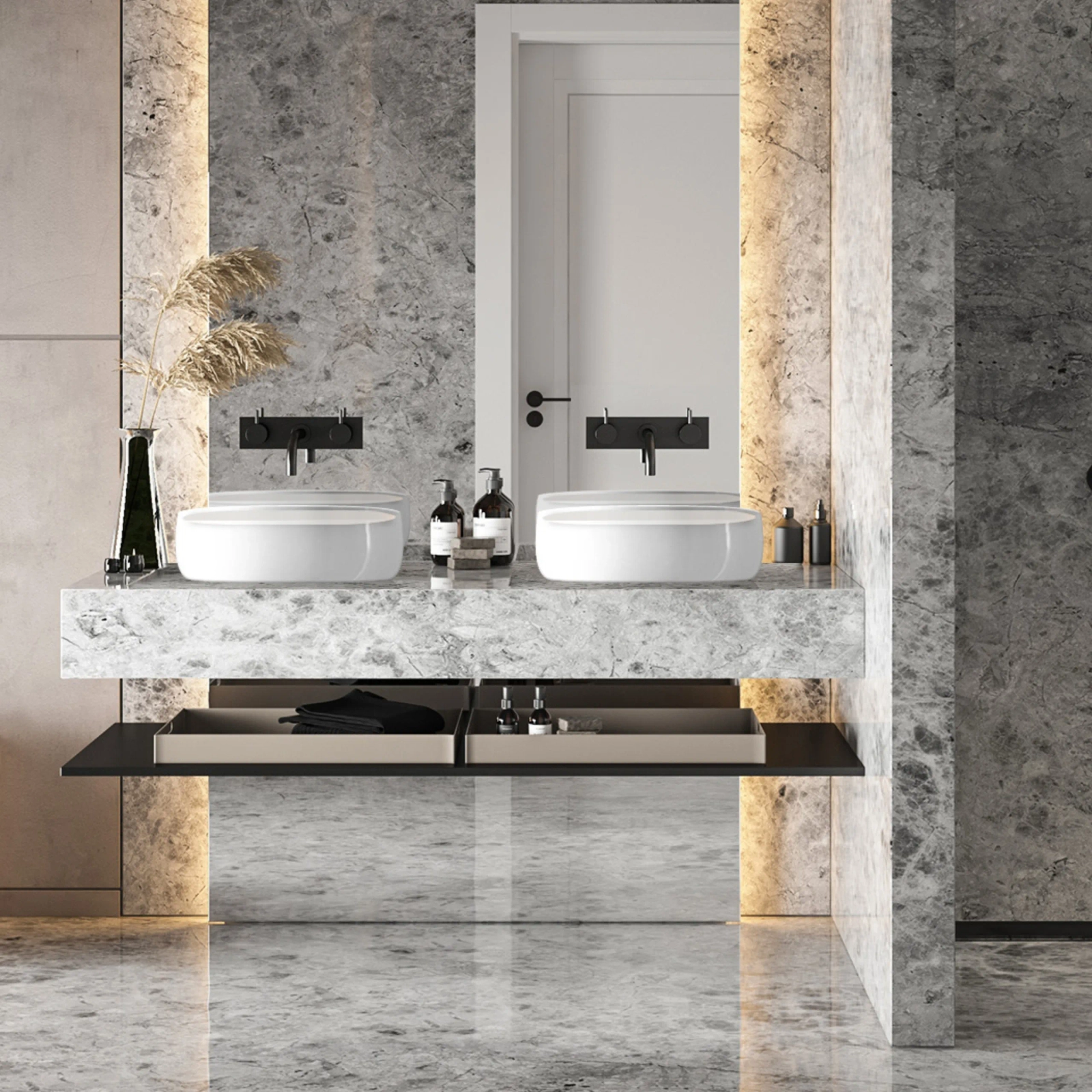 Ant stalviršio montuojamas dizainas leidžia sukurti šiuolaikišką ir tvarkingą vonios kambario sprendimą, o ergonomiškos proporcijos užtikrina patogų kasdienį naudojimą. Dėl universalaus stiliaus ALVIO praustuvas lengvai derinamas su įvairiais praustuvo maišytuvais.